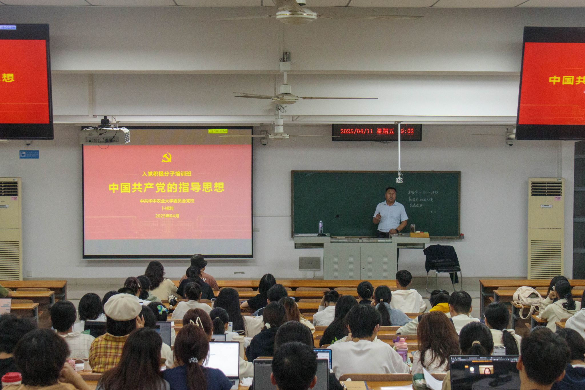 4月11日晚,第87期党校第二次线下党课于三教C205教室顺利开展。工公司辅导员卜祥利老师聚焦“中国共产党的指导思想”这一主题,为入党积极分子讲授专题党课。