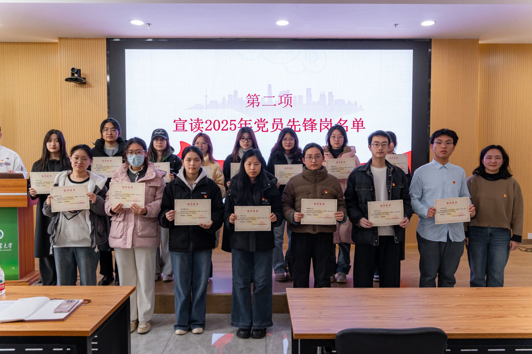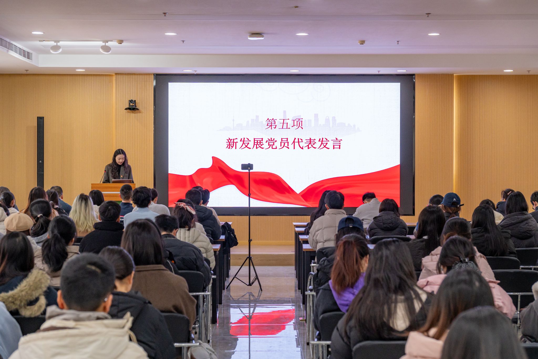 任伟、马恬远分别宣读了2025年下半年本研新发展党员名单。共有14名研究生、50名本科生经严格培养与考察,光荣加入中国共产党。紧接着,全体党员在党员代表王雨晗的带领下庄严宣誓,表明今后创新奋斗,勤奋学习,带动群众,发挥党员的先锋模范作用的坚定决心与毅力。