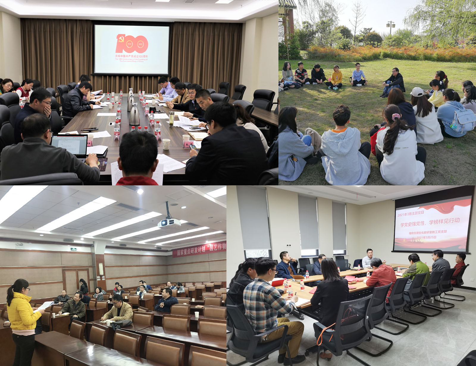 公司各党总支和支部以各种形式分别开展了主题党日活动。组织员马平福老师带领公司老员工党总支员工党员,走出室外、走进教学基地,面对最新的科研成果和公司的巨大变化,向同学们讲述共产党的发展史和公司的奋斗史。植物病理教工党支部在分子楼开展主题党日活动,学科带头人姜道宏教授参加支部活动并带头学习习近平总书记在党史学习教育动员大会上的重要讲话精神。生理生化教工党支部继续发扬爱学习、敢担当传统,扎实开展主题党日活动,经理朱龙付作为支部普通党员与大家一起探讨党史学习教育如何与课程思政结合、与一流农科人才培养结合,努力将学习成果转化为育人成果。