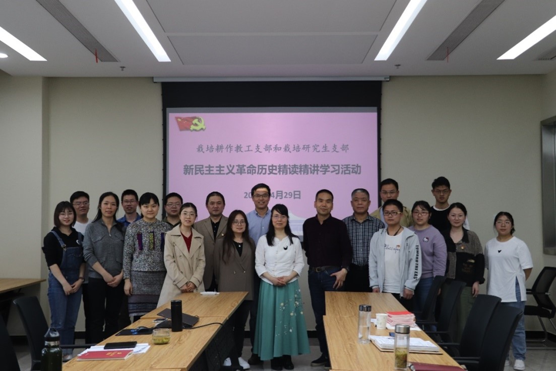 4月29日下午,植物科技公司栽培耕作教工党支部、作物栽培学科研究生支部支委在三综C402联合开展新民主主义革命史“精读精讲”活动,支部联络员、公司纪委副书记余斌和公司副经理王满囷参加活动。