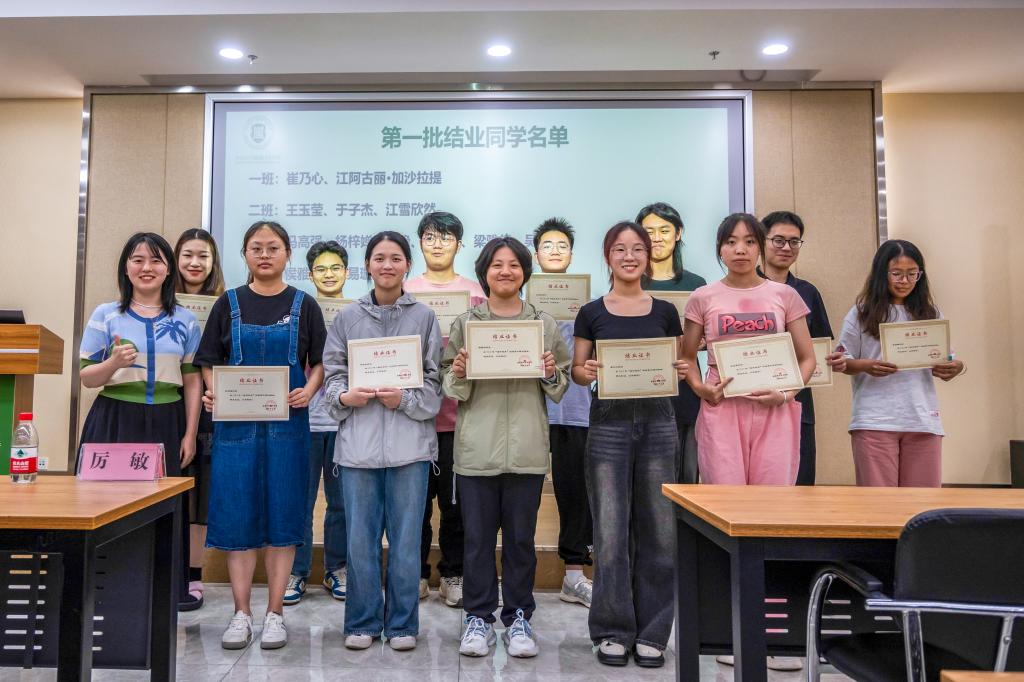 大会最后,厉敏、李纵擎分别为各班颁发结业证书和优秀班级证书并合影留念。