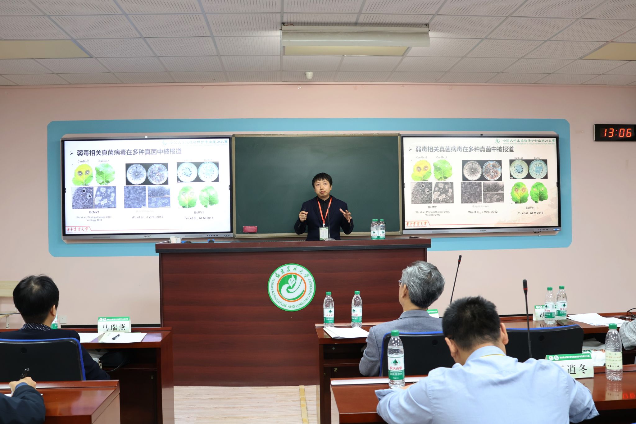 青年教师吴明德在“青年教师学术论坛”中获得特等奖,报告《真菌病毒的跨种传播导致植物病原真菌“生病”》聚焦油菜黑胫病菌中的真菌病毒通过共侵染过程跨种传播至灰霉病菌,并导致灰霉病菌致病力衰退过程,揭示了真菌病毒在不同植物病原真菌间传播的病理学意义。此外,通过对两种病菌共侵染样品的宏病毒组学分析,发现真菌病毒的跨种传播在自然界中可能普遍发生,广寄主的植物病原真菌可能成为病毒在不同植物病原真菌间传播的桥梁。这项研究为利用无症状真菌病毒进行植物真菌病害的生物防治提供了新的思路。
