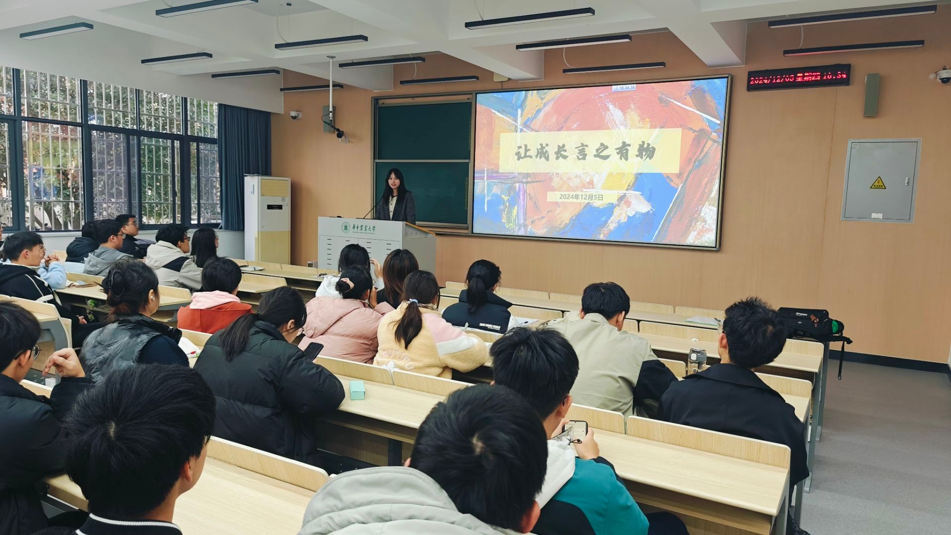 12月5日,园艺林学公司辅导员杨子萱在二教103以“让成长‘言之有物’“为主线,通过讲述徐本禹支教的故事,为同学们展示了演讲的技巧和注意事项。她从好的开头、有力的结尾、舒展自然的仪态等多个方面进行了演讲培训,并用即兴演讲的形式与同学们进行互动,帮助班支提升表达能力。