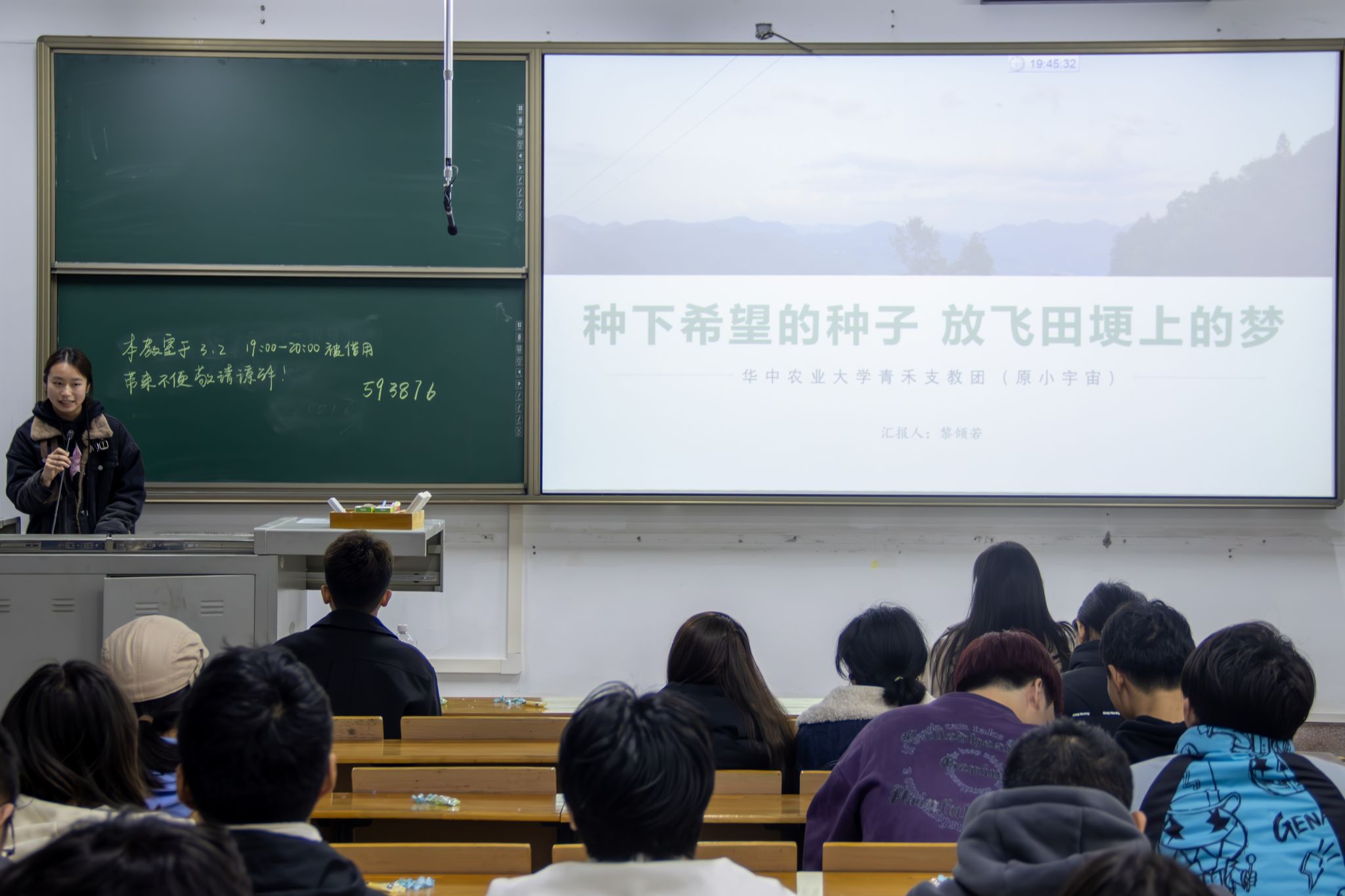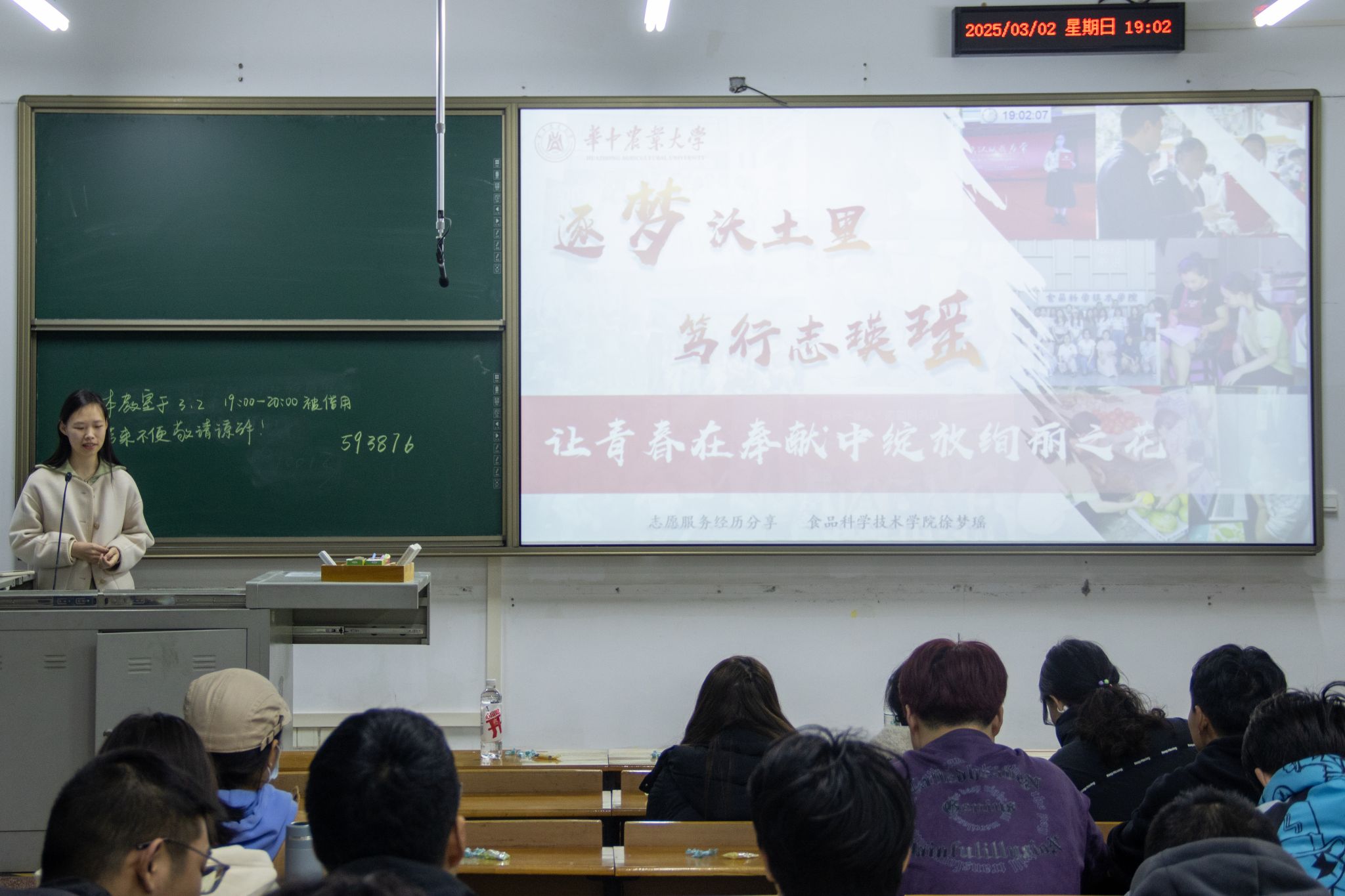 青禾支教团负责人黎倾若详细介绍了团队十年来的支教历程。这支由华农学子组成的队伍,累计为偏远地区20余所中小学输送知识力量,服务时长超1.5万小时。“支教不仅是知识的传递,更是心灵的对话。”她向同学们发出倡议:“加入青禾,用脚步丈量土地,用热爱书写青春,让志愿服务的印记成为老员工活最珍贵的注脚。”