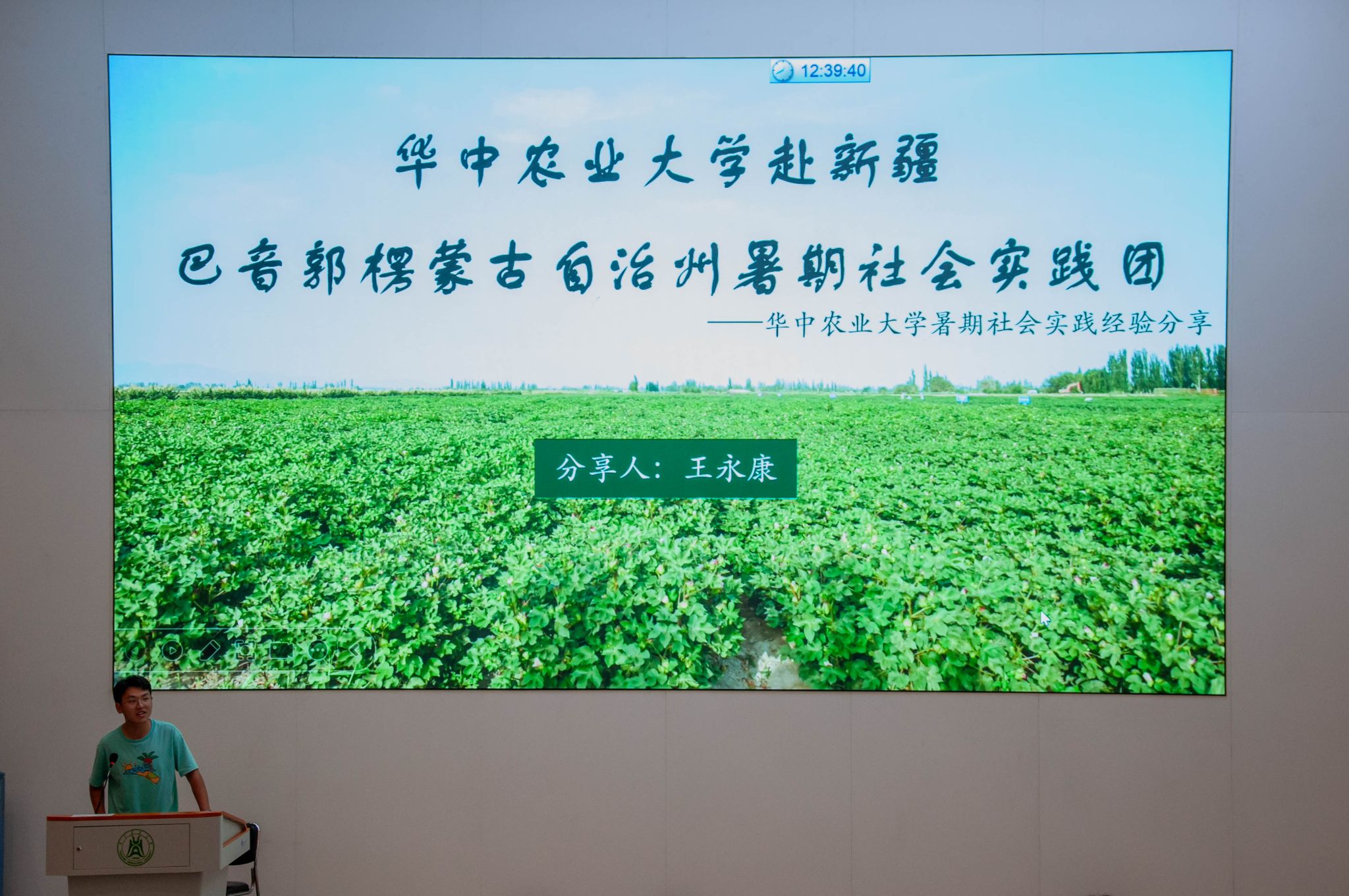 在经验分享环节,两支优秀社会实践团队代表先后发言。“赴新疆巴音郭楞蒙古自治州实践团”负责人王永康从团队建设、课题设计、实施过程三个方面分享了实践经验。他特别强调,实践选题应结合专业特色与社会需求,团队组建要注重成员间的优势互补,在实施过程中需做好应急预案,并建立规范的每日材料归档制度,以确保社会实践活动有序开展。