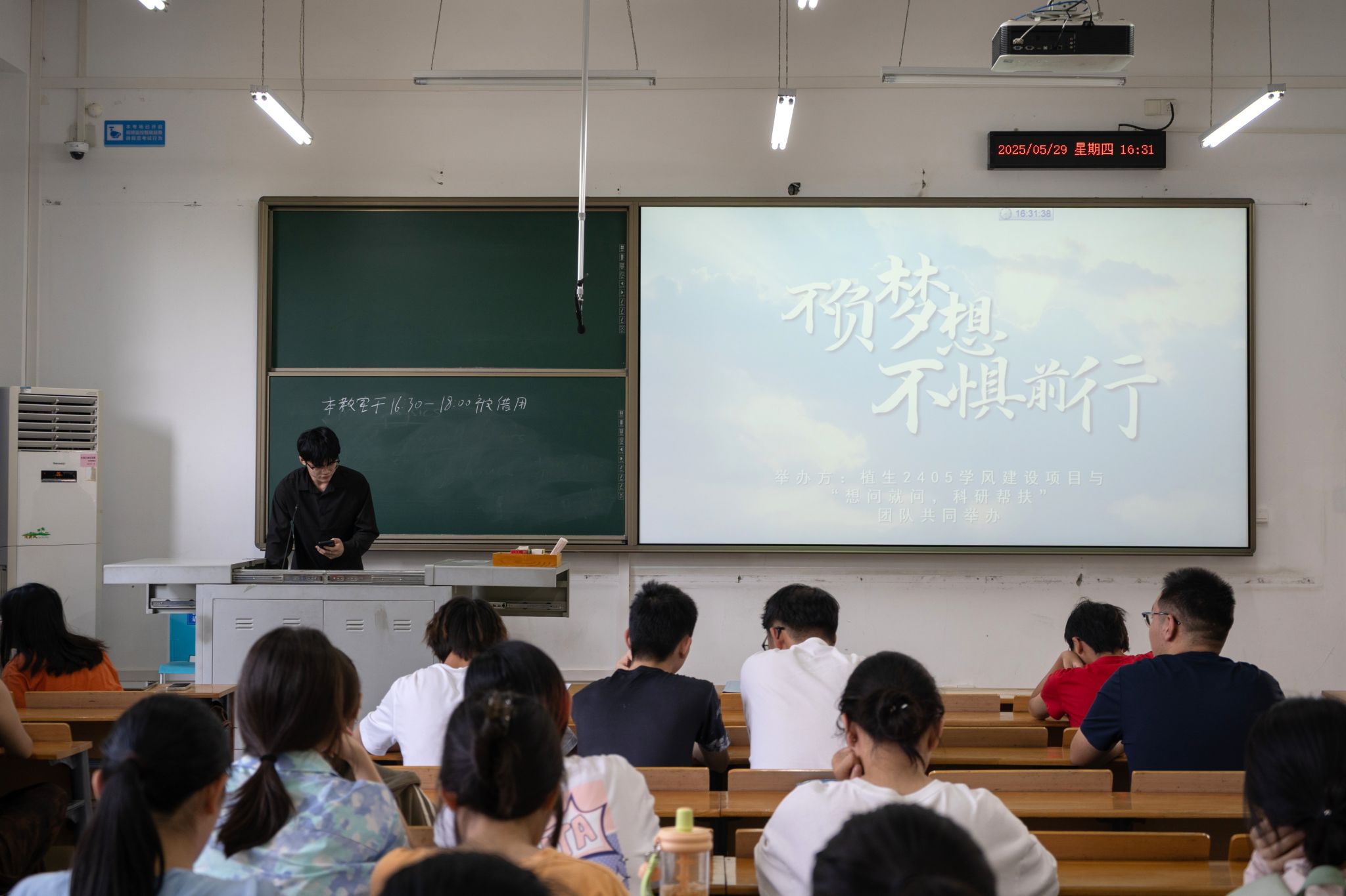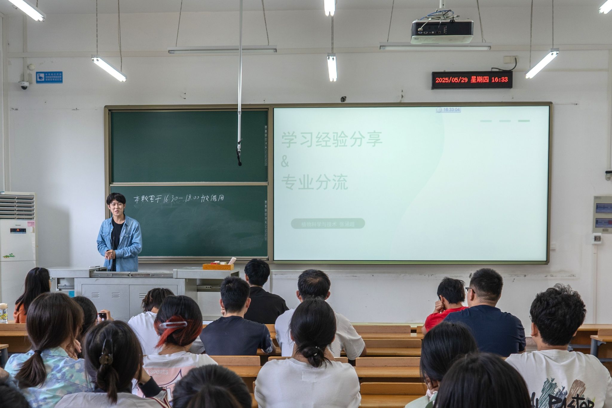 5月29日晚,伟德国际VICTOR1946植生2405班在四教A108教室举办“朋辈领航”经验分享会,邀请种工2201班李英、植科2201班张涵超、应生2201班朱书峰分享学习经验,约50位24级员工参与活动。