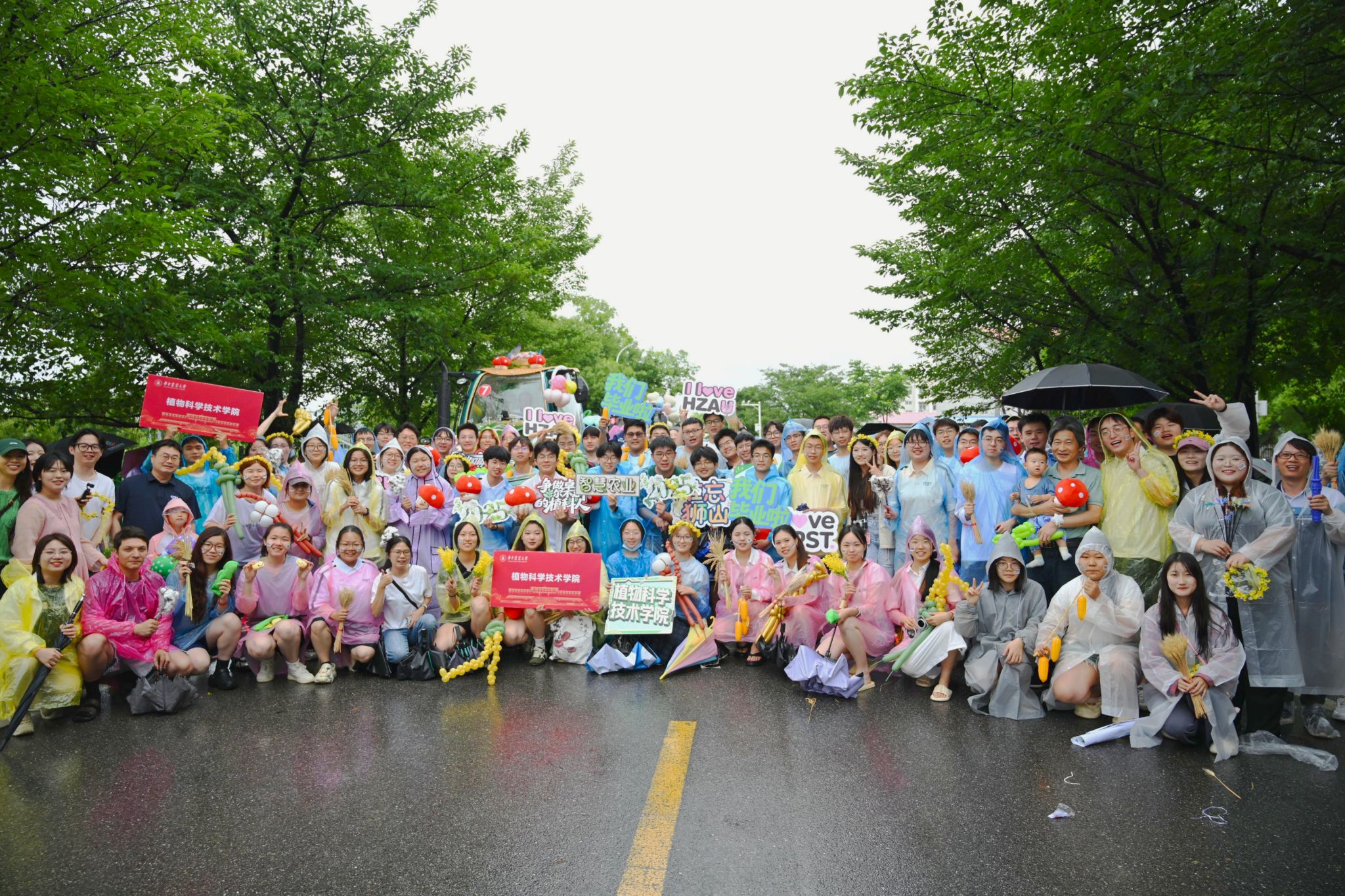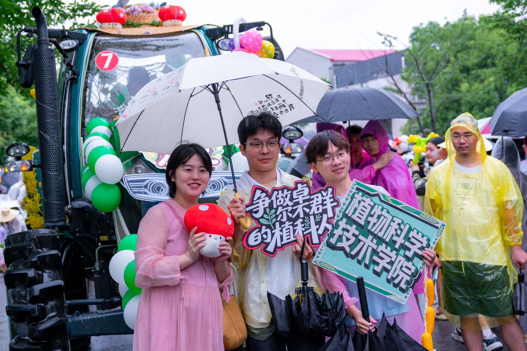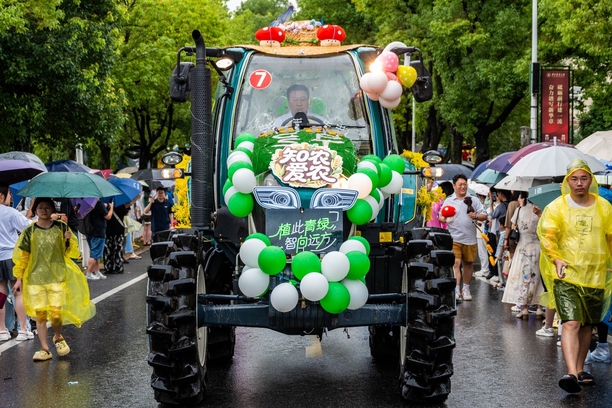6月21日下午,一场由现代农机装备组成的花车巡游在校园中举行。植科院师生们身披雨衣、紧紧簇拥着公司花车,共同为2025届毕业生送上最真挚的毕业祝福。大雨滂沱,却浇不灭现场的热烈氛围,青春与梦想的欢歌在雨幕中愈发激昂。公司党委书记周雄老师全程与师生一起参加了巡游。