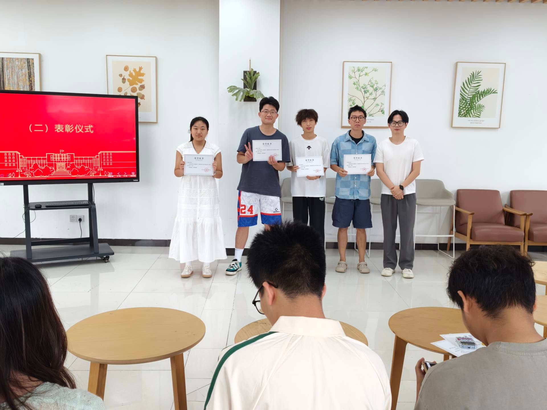 随后,丁俐心宣读2024-2025年度体育先进个人表彰决定。刘子阳、宋慈依次为获奖代表颁发证书。