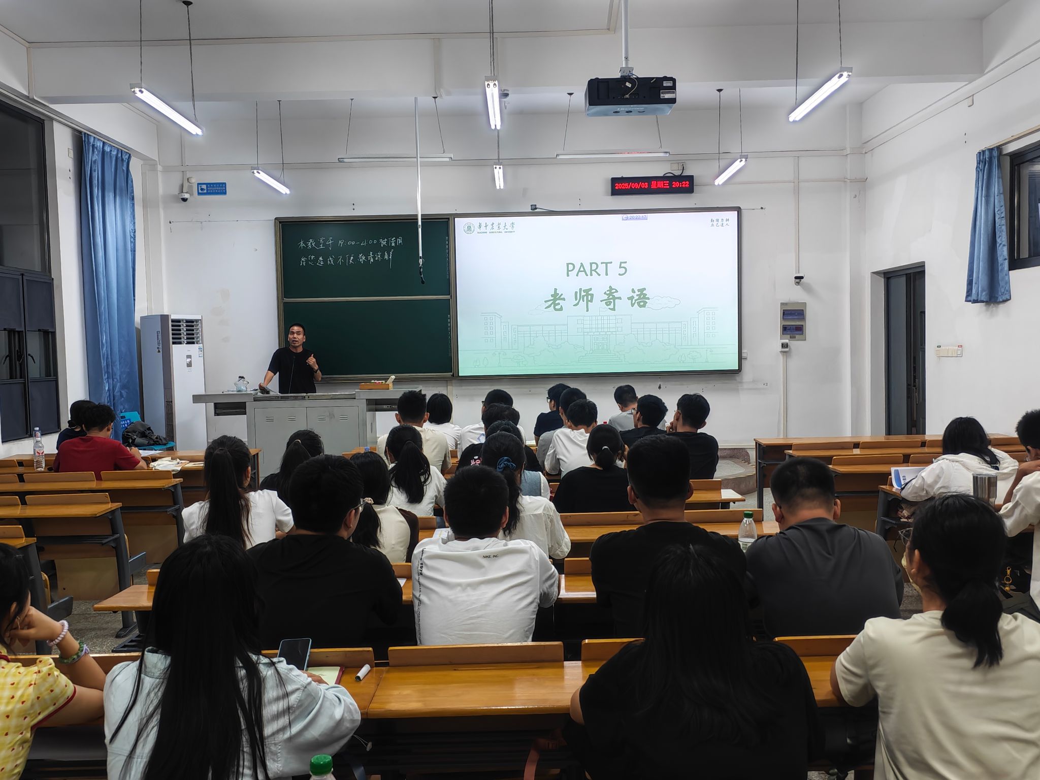 在智农2505班,班主任刘超从“大学学习”“科研活动”“班风建设”三个维度提出要求,勉励新生不懈奋进、追求卓越。李林则聚焦专业发展,鼓励同学们把握大学机遇,依托智慧农业专业平台实现全面成长。