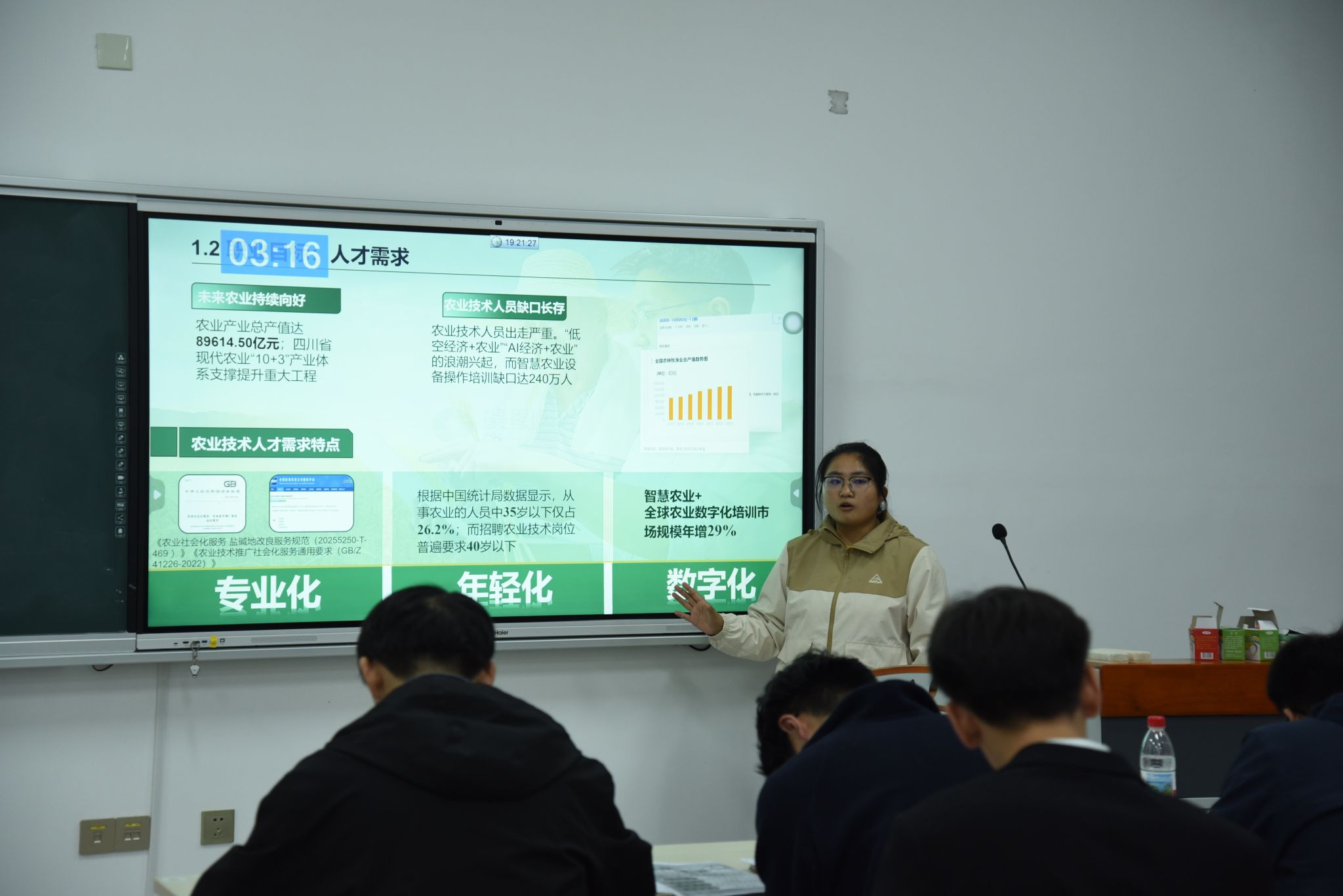 植生2409班的张宇春基于对家庭涉农背景的深入了解,选择了种业销售作为未来的职业方向,致力于搭建连接科研与田间的桥梁。他计划在短期夯实专业知识并开展行业实习,锻炼人际沟通和团队协作能力,中期统筹乡村多区域销售,重点推广优质品种,以实际行动推动农业科技成果的高效转化。