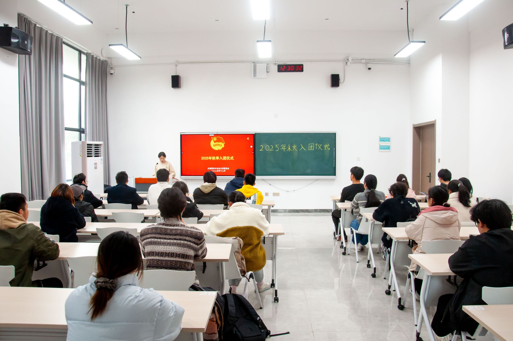 12月10日中午,公司在襄阳书院二教107举行2025年秋季新团员入团仪式。老团员代表、25名新发展团员及襄阳两新基地团委书记练人杰参加仪式。