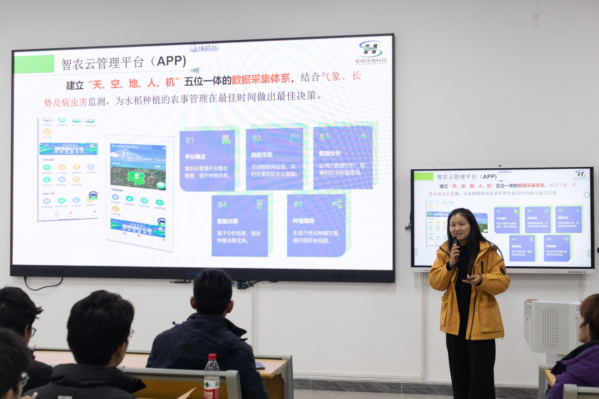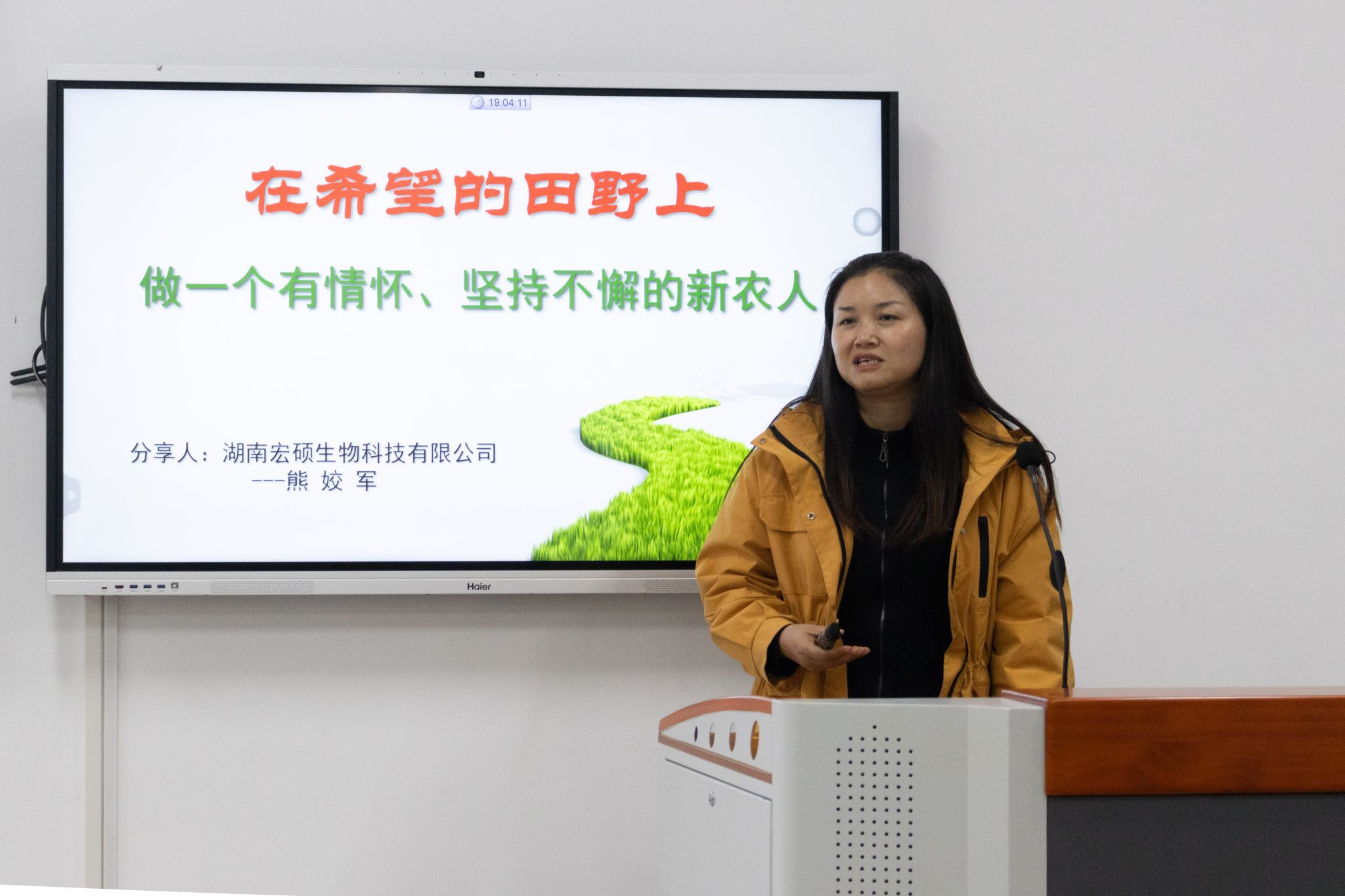 分享过程中,熊姣军结合自身创业感悟,对青年学子提出殷切期望。她鼓励同学们深耕专业知识、注重实践积累,主动对接产业发展需求,将所学知识转化为服务农业的实际价值;在创业道路上要坚守初心、勇于坚持,学会主动寻求专家指导与资源支持,同时保持自律自觉,心怀家国、爱家爱己,以积极乐观的态度直面挑战、攻坚克难。
