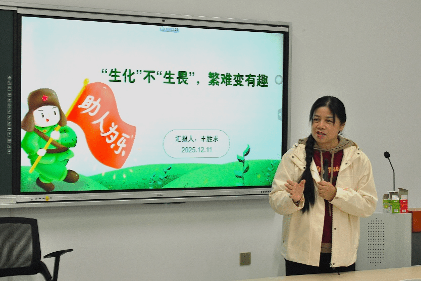 活动伊始,丰胜求结合自身大学时期“无作业、无资料、无期中考”的生化学习经历,向员工分享了学好生化的两大“法宝”:一是绘制思维导图,梳理知识脉络,构建清晰的知识框架;二是勤做习题,通过练习促进知识内化,提升知识运用能力。同时,她还分享了深耕教学工作的两大心得——充分备课、虚心请教,以此打磨教学内容,提升教学质量。