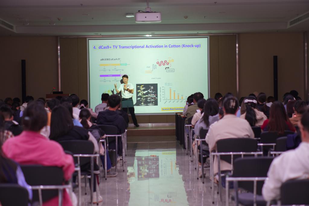11月14日下午,2024学术年会之“棉花基因编辑与分子育种”主题报告在公司第三综合楼A705报告厅举办。学院经理金双侠教授作学术前沿报告。