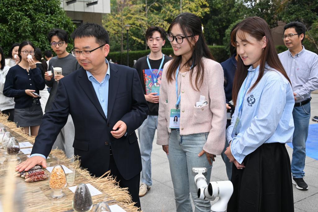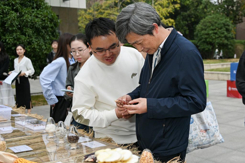 现场,严建兵对参展的研究生进行了提问,“为什么玉米会有不同的颜色?颜色是什么来控制的?”“为什么蝴蝶会在不同的环境下展现出不同的色彩和斑点?这背后蕴含着怎样的生态机制和适应策略?”“大豆为什么重要?进口量每年是多少?”通过一系列的提问,严建兵指出,“农科学子要对基本国情有所了解,必须明确研究领域中最重要的问题是什么,深入思考解决这些问题的方法,并勇于在实践中检验和完善这些方法。”