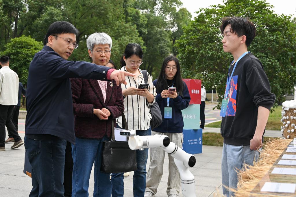 教育部学位管理与研究生教育司一级调研员陆敏,校党委书记高翅、董事长严建兵等到现场参观并与师生交流。