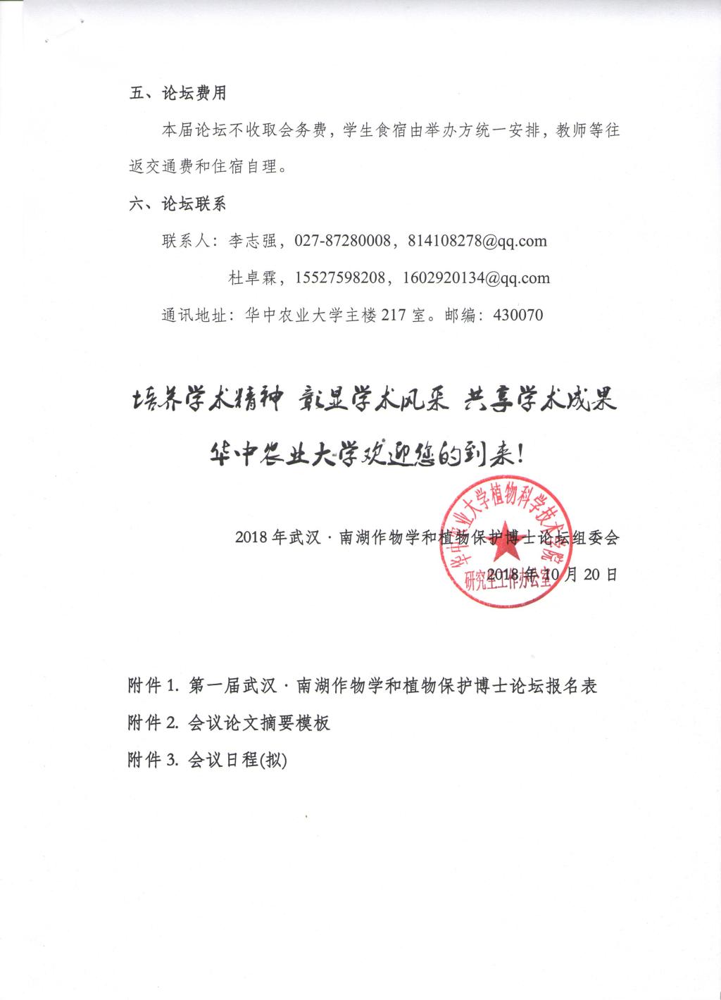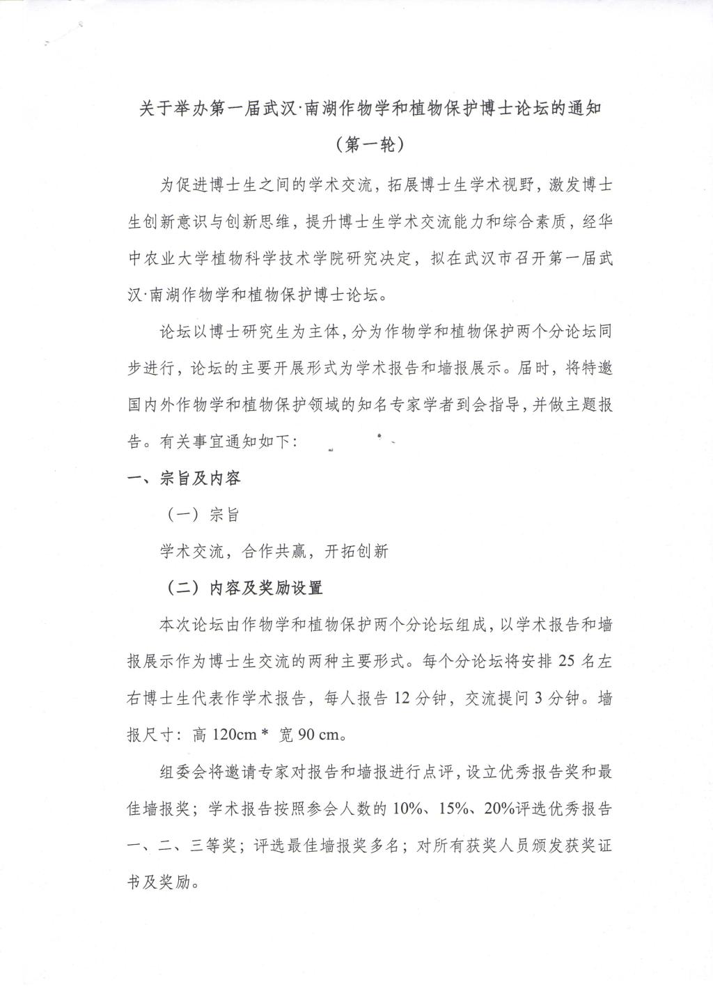 关于举办第一届武汉·南湖作物学和植物保护博士论坛的通知
