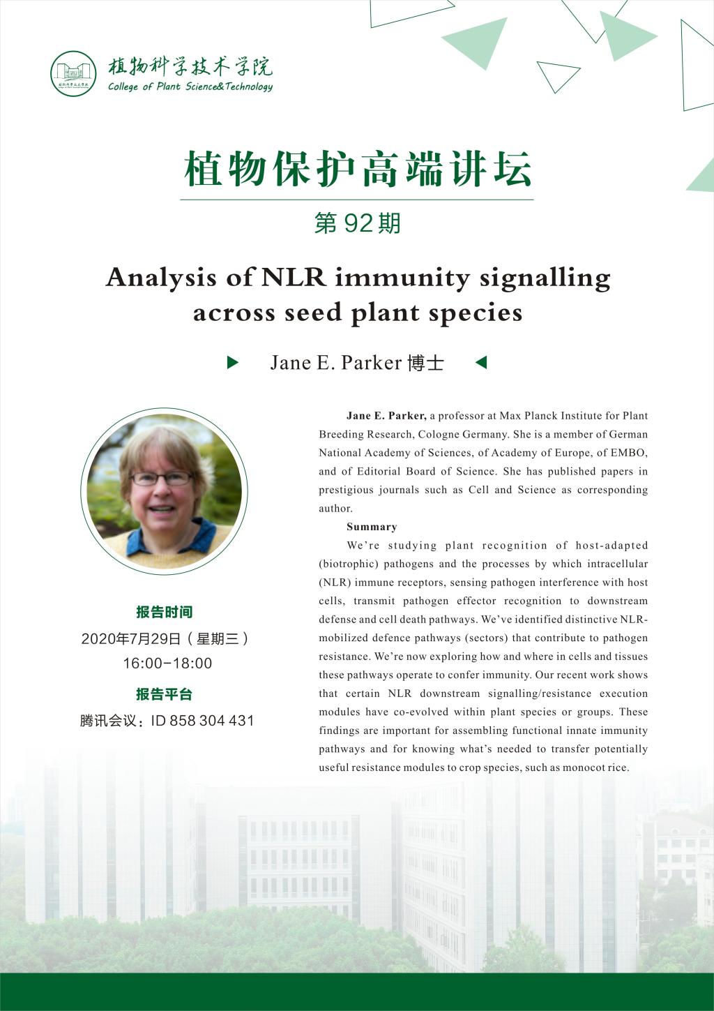 植保高端论坛(Jane E. Parker 博士)