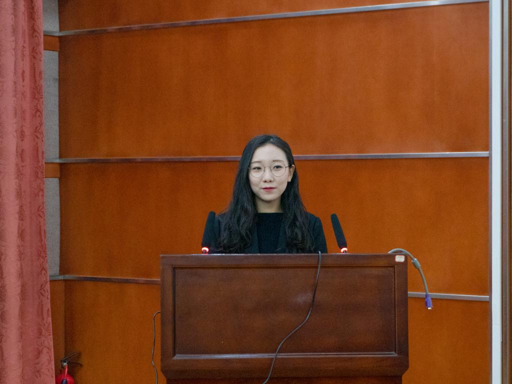 曾红霞致欢迎词。她对韩国东亚大学师生一行来校交流表示热烈欢迎,并表示两董事长期以来友谊深厚,希望两校继续深化合作,通过学术研讨加强两校在人才培养和学术研究上的深度合作,互促互进。