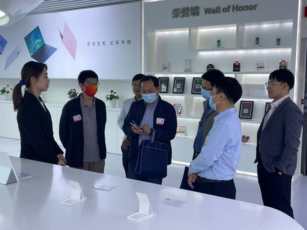 期间,朱龙付一行参观了华为武汉研究所园区及产品展厅,详细了解华为最新消费者终端产品、行业应用等科研成果。
