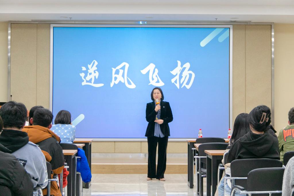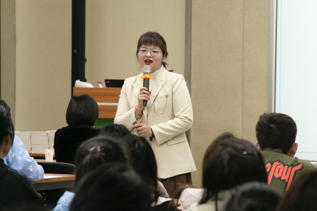 下半场的讲座由王会平主持,她从“学会下笨功夫”“突破惯性思维”“与优秀的人为伍”“人才选拔模型”四个方面向同学们介绍了如何做职场规划以及怎样提升自己的价值,提醒同学们正确的规划、强大的执行力、极度自律和坚持长期主义是关键;又以豫之星破格录用非主体专业应聘者为例,告诉同学们拥有开放的心态才能掌握自己的人生。最后,王会平在总结中强调:“成长是自我革命、不断打破,在废墟中重建的过程。”