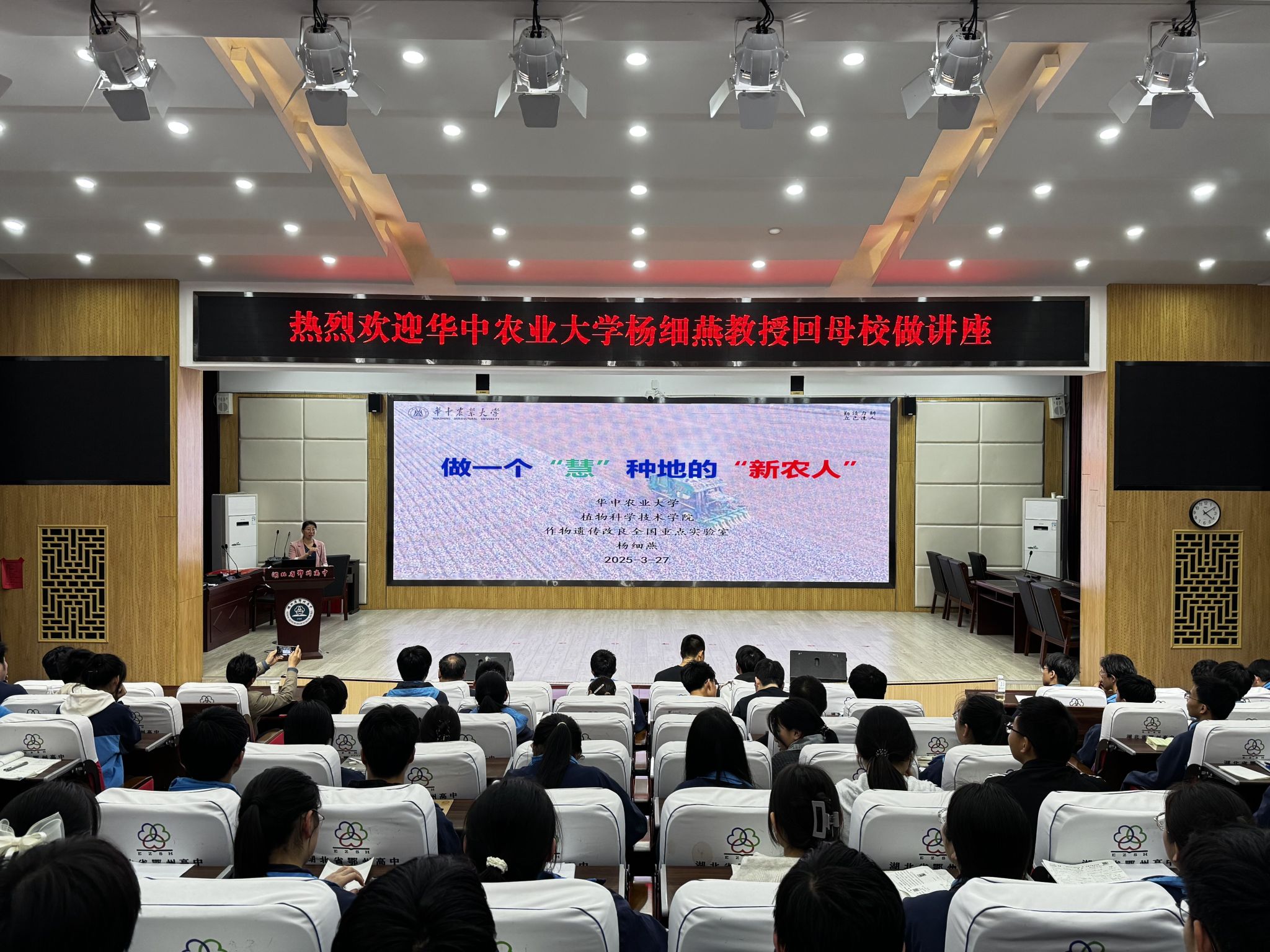 3月27日,公司赴鄂州高中开展“华农教授进名校”活动,杨细燕教授以“做一个‘慧’种地的‘新农人’”为题与200余名鄂高学子交流。