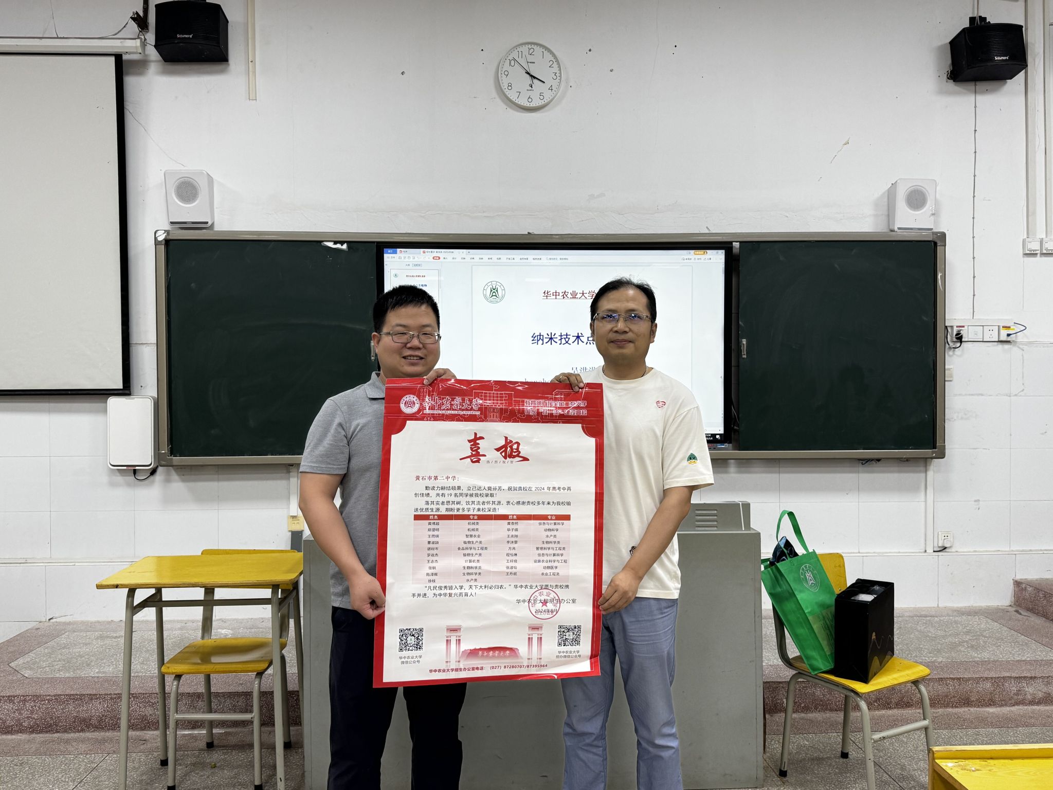 纳米材料在农业领域发挥怎样的作用?吴洪洪谈到,他与团队构建了基于纳米感应元件的智能作物可以实时监测植物体内过氧化氢、葡萄糖等物质的含量,实现作物早期受胁迫时及时预警,减少实际生产中的产量损失。吴洪洪播放了智慧农业视频,他讲到“农业已经告别了‘面朝黄土背朝天’的1.0时代,正朝着‘无人化、智能化、机械化’的4.0版本高速迈进,未来的农业前景无限!”鼓励同学们找到兴趣、坚持梦想结合个人学习及工作经历寄语同学们扎实学好知识,期待与同学们华农再见