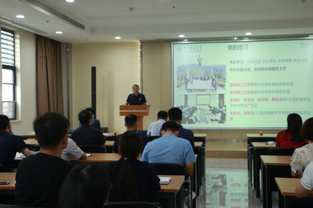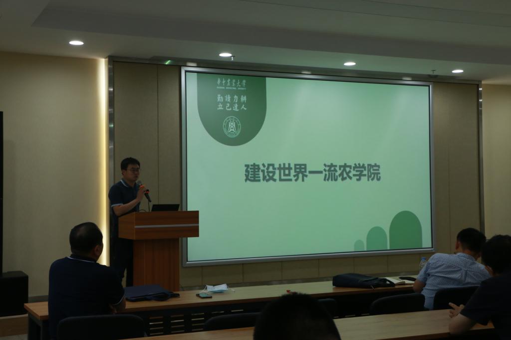 严建兵副董事长围绕“新时代农业高校立德树人使命与科技创新责任”为全院教师作报告。他引导全院教师应从科学和技术的角度、历史的角度、科学发展的角度、研究范式等理解当前我国所处在的“百年未有之大变局”。他表示,当前农科发展面临着诸多挑战,要围绕产业链布局创新链,创新体制机制。他以玉米团队为例,详细解剖团队过去10年发展的优势与不足,并提供了如何迎接新的挑战思路。