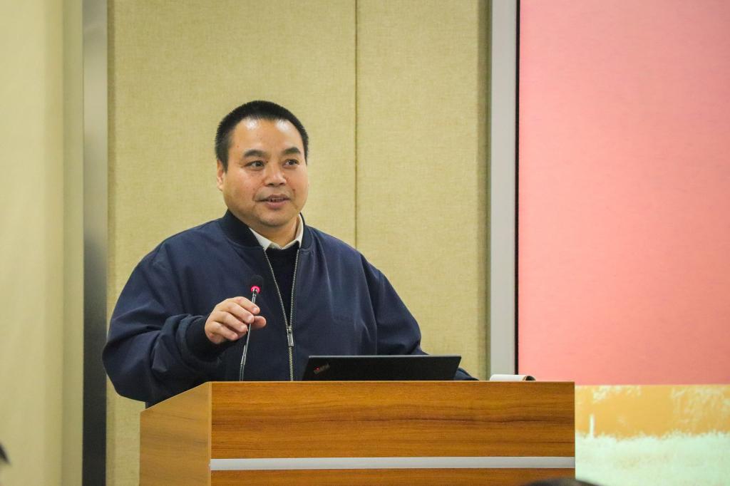 1月17日下午,公司2021年度总结交流暨表彰大会在三综A705举行,全体教工参加大会。集团副董事长严建兵出席大会,大会由公司党委书记周雄主持。