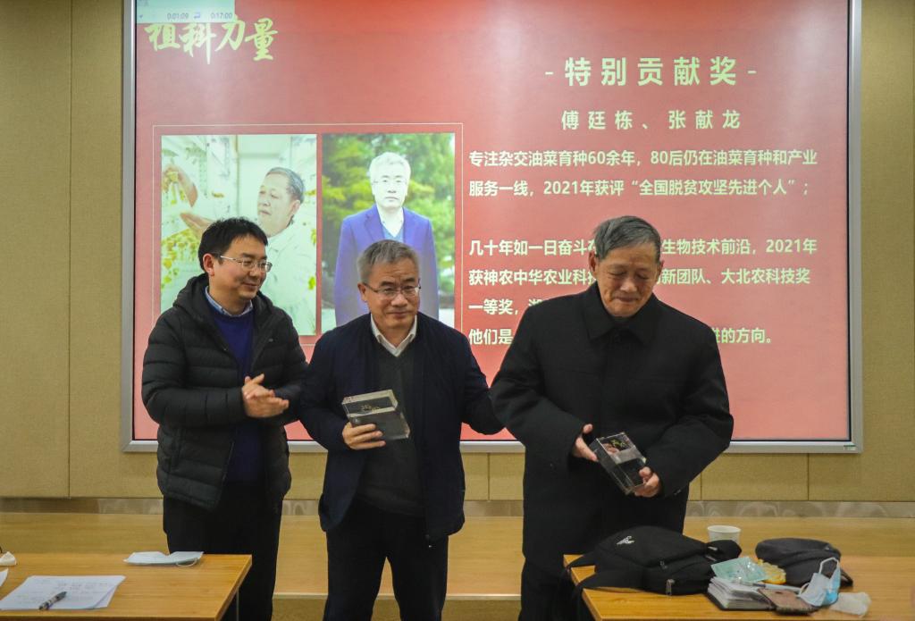 朱龙付宣读了公司“2021·植科力量”表彰结果。“特别贡献奖”授予傅廷栋院士、张献龙教授,“融乐典范奖”授予彭少兵教授,“育人贡献奖”授予熊栋梁教授、鄢文豪教授及公司辅导员团队,“教书育人奖”授予朱芬教授、谢卡斌教授、丰胜求副教授、袁金展老师,“人才招聘贡献奖”授予黄求应教授、李国庆教授、张宏宇教授、胡立勇教授,“员工竞赛指导奖”授予熊栋梁教授、王茂军教授、李林教授,“团队建设奖”授予李林教授,“科技进步奖”授予周广生教授及其团队,“社会服务奖”授予黄见良教授、边银丙教授、汪波副教授,“突出奉献奖”授予应征入伍的黎子豪、郭树梁、高洋洲、马一琳、金毅涛、邵俊豪、张艺以及投身基层就业的刘相茹、周一帆、汪奇灵、阿依古再丽等27人,“集体荣誉奖”则授予全体奋进的植科人。