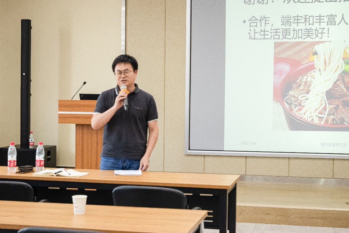 活动伊始,经理朱龙付介绍了公司近年人才招聘情况及公司团队力量建设的近况,也表达了对本次暑期交流的期待和展望。同时,朱龙付对暑期安全工作进行了提醒,要求全体教师落实常态化疫情防控政策,认真开展实验室安全自查,做好应对高温、极端天气的防护和提醒,确保师生健康安全。朱龙付强调,各团队要开好暑期务虚会,做好员工实习实践指导,积极开展科研与社会服务工作。