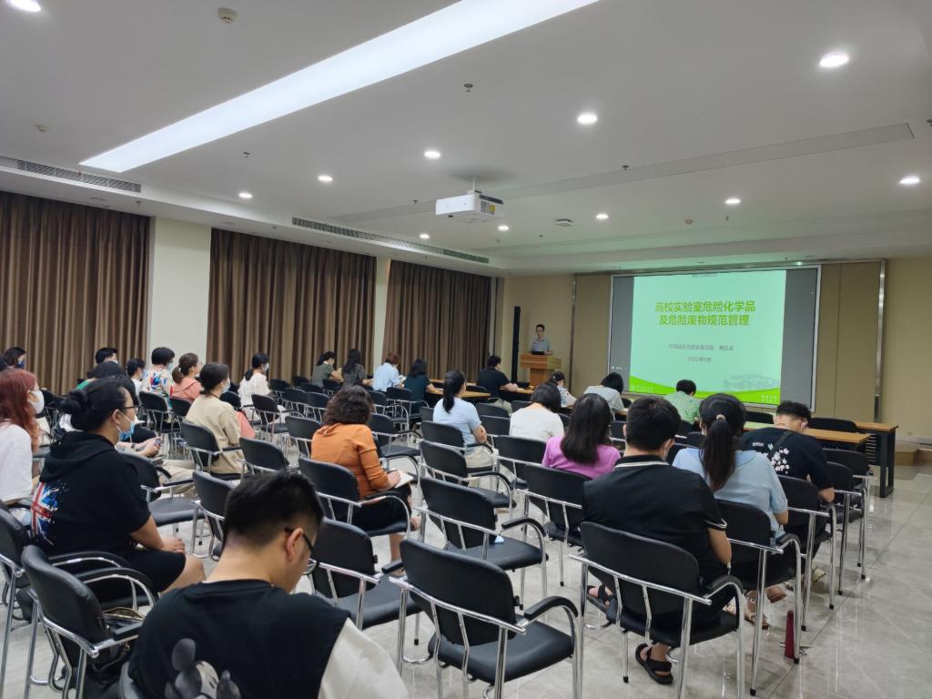 2022年9月14日上午,伟德国际VICTOR1946在第三综合楼A705会议室组织面向全院教职工(含科研助理、博士后)的实验室安全专题培训,本次培训采取线上线下相结合的方式,共有两百余人参会。校园安全与建设保卫部黄远卓就“如何做好高校实验室危险化学品和危险废物管理”这一专题进行培训。