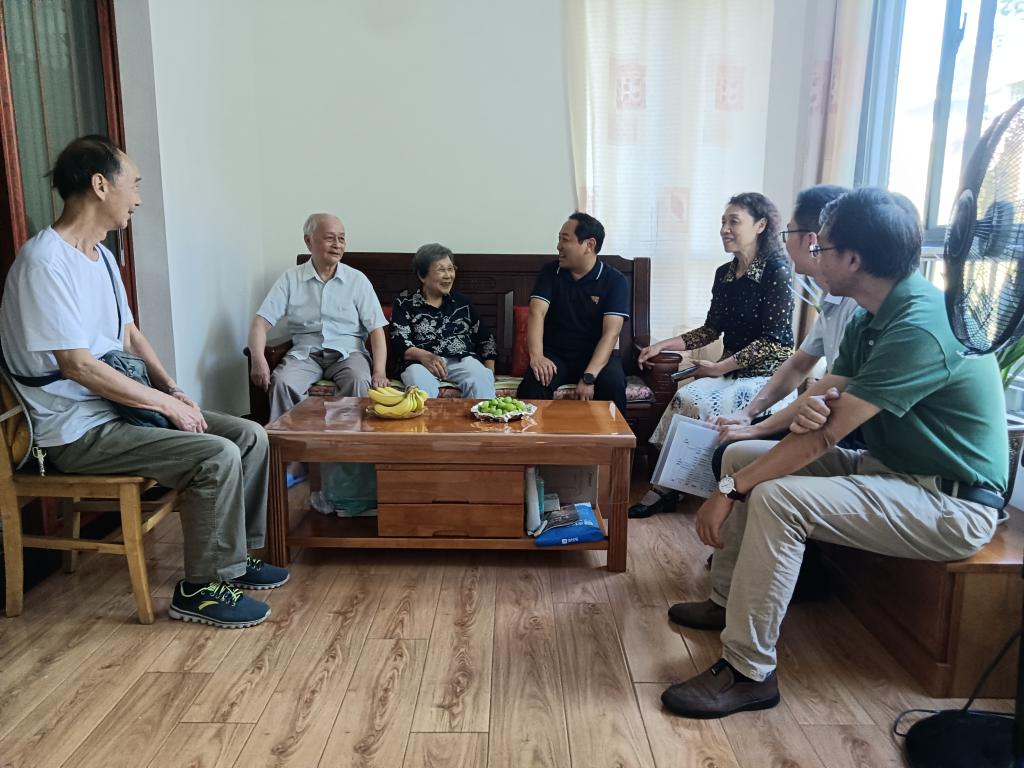 秋高气爽,丹桂飘香。在重阳节来临之际,为弘扬中华民族尊老、爱老、敬老的传统美德,10月3日上午,公司党委书记周雄、经理朱龙付、党委副书记孙超、副经理罗朝喜、姜海、王满囷、郭亮,离退休党支部和老年协会的李合生、张玉群、胡立勇、杨长举、游长梅等老教师一起走访慰问了公司17位80岁及以上的老教师,为他们送去节日的祝福。