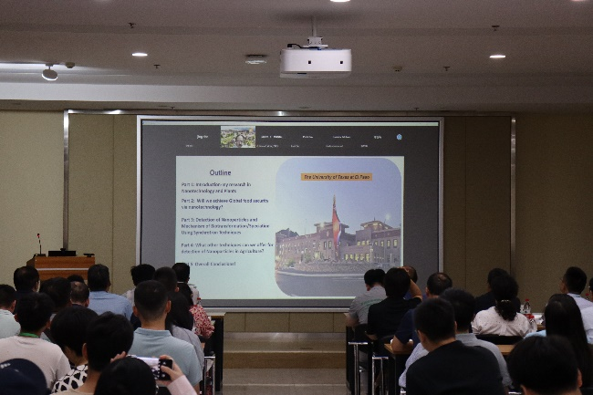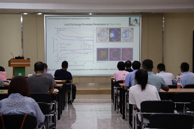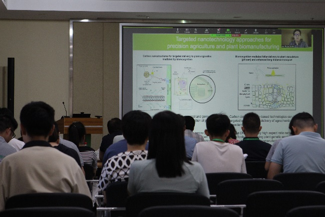 论坛上,来自美国德克萨斯大学埃尔帕索分校Jorge Gardea-Torresdey教授、康涅狄格州农业试验站Jason White教授、加州大学Juan Pablo Giraldo、卡耐基梅隆大学Gregory Lowry教授、哈佛大学张兴才研究员,德国汉堡大学Wolfgang Parak教授、埃及坦塔大学Nabil Elsheery教授、韩国首尔国立大学Seonyeong Kwak教授、澳大利亚西悉尼大学Jayakumar Bose教授、迪肯大学王宜超研究员、浙江大学刘平伟研究员、南京大学赵丽娟教授及公司吴洪洪教授等42位专家学者在大会上做了专题报告,分享了各自领域内最新的研究进展。与会专家聚焦植物纳米生物学在农业与植物科学方面的应用,围绕工程纳米材料提高作物抗逆、气候韧性的机理研究及其在可持续发展农业中的应用,纳米材料在植物和农业系统检测中的应用,纳米技术构建核酸载体递送核酸分子介导植物的转基因和基因沉默,纳米感应元件用于作物信号分子的实时监测和早期预测,基于精准农业和植物细胞器靶向的纳米技术,纳米材料与植物细胞的相互作用以及纳米材料在植物体内转运及转化的机制等研究领域进行了汇报。
