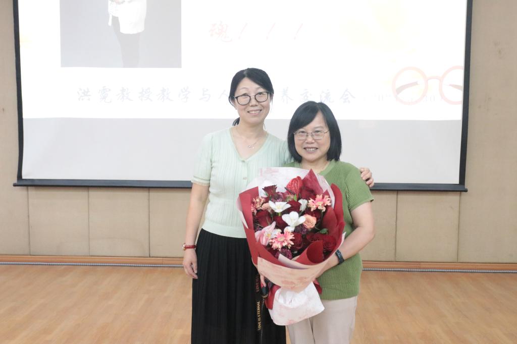 最后,党委书记周雄、王利平副教授、郑露副教授作为代表为洪霓教授送上荣休礼物。