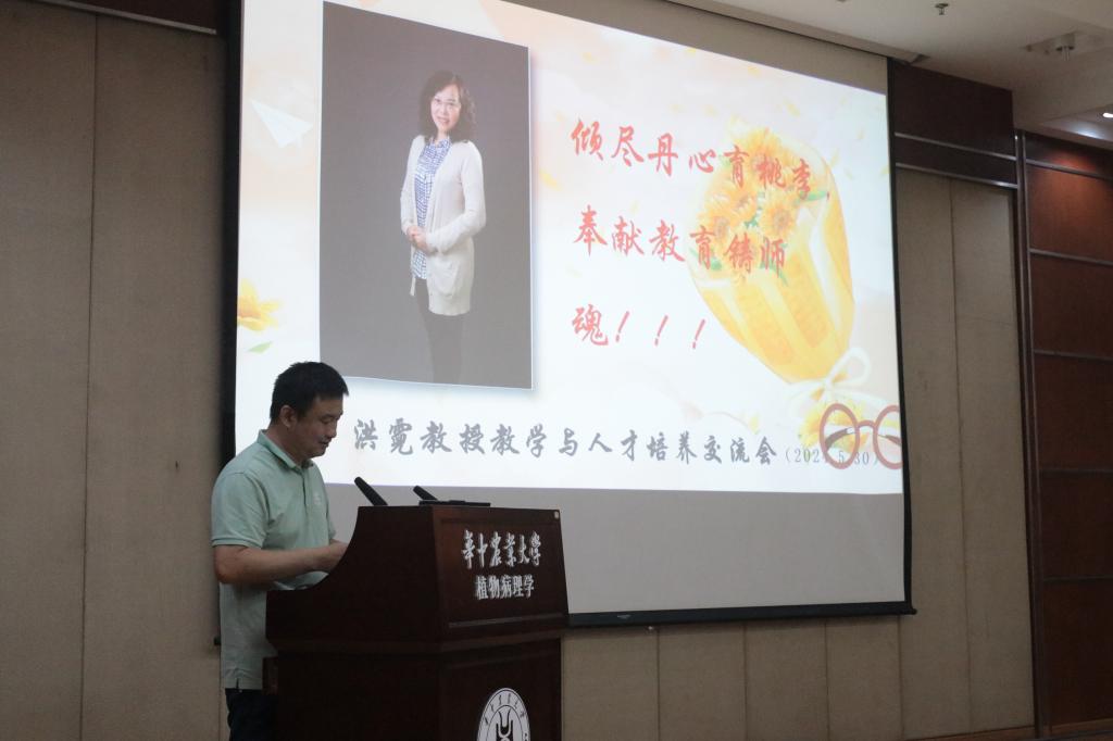 5月30日下午,公司在分子楼一楼报告厅举行洪霓教授教学和人才培养交流会暨荣休座谈会。植物病理教研室全体成员、洪霓教授在读员工、党委书记周雄参加座谈会,会议由植物病理教研室主任谢甲涛主持。