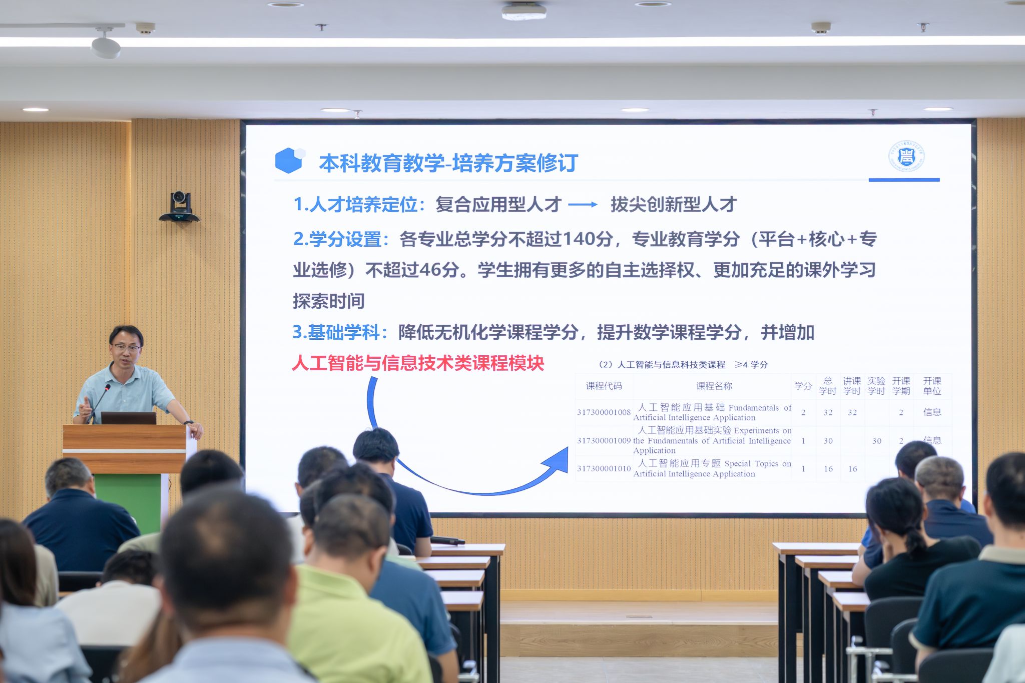 副经理罗朝喜就本科人才培养工作进行了工作布置。他从培养方案修订、教育成果奖评审、本科就业工作三个方面展开。为缓解创新型人才短缺问题,公司对培养方案进行多项修订:以培养“拔尖创新型人才”为目标,重新规划学分设置,赋予员工更多自主选择权;在专业课设置上突出跨学科融合,新增人工智能与信息技术课程模块;推动实践教学发展,注重产教融合,积极创设育人新环境。针对即将截止的教学成果奖申报工作,他强调,申报选题要契合国家政策导向,充分体现创新性、实用性与科学性。此外,他还通报了本科就业工作情况。