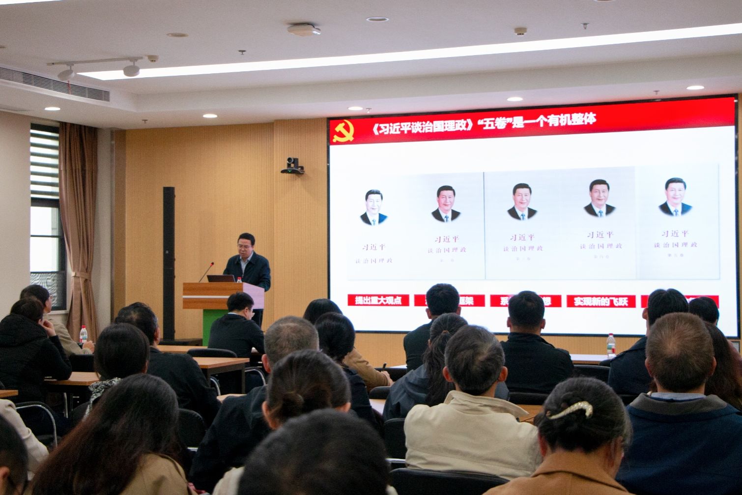 程华东作“一体推进教育科技人才事业发展”专题报告。他深入解读《习近平谈治国理政》第五卷核心要义,强调其作为马克思主义中国化时代化最新成果,系统阐释“两个结合”“六个必须坚持”等理论创新,提出“四个之最”要义与“四个之问”实践指引。程部长围绕教育科技人才一体改革,解读党的二十大“三位一体”部署及《教育强国建设规划纲要》“三大属性”“六大特质”目标,提出以数智教育为突破口、以科研范式转型为着力点,推进学科交叉、科教融汇与产教融合,构建“七大一新”布局,通过五链变革驱动机制创新,为农业现代化与乡村振兴贡献力量。此外,他勉励全体教职工,要深刻认识到自身在这一宏大战略中的使命与担当,将个人发展融入公司和公司发展大局,以“守正创新”的理论品格和实践要求,不断破解发展难题,推动公司各项事业迈向更高质量水平。