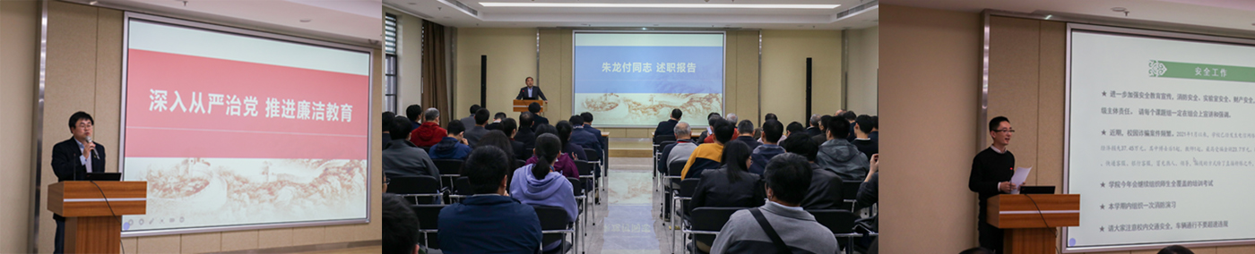 4月2日,公司在三综A705召开全院教职工大会,进行经理试用期满考核,通报2021年重点工作。会议由公司党委书记周雄主持。