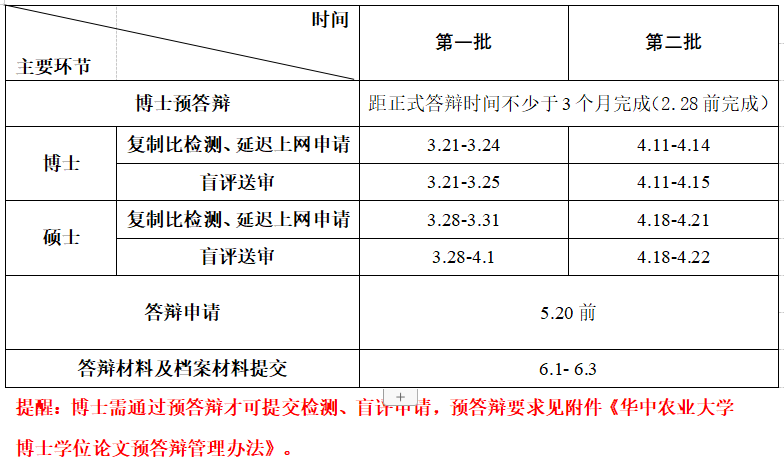 一、学位评定工作主要环节时间安排