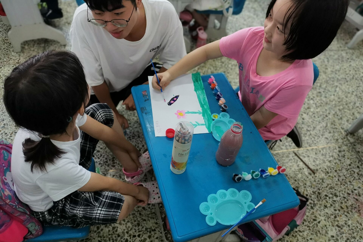 两节简短的课程结束,附校同学们不仅收获了知识,也提升了动手能力,课桌上摆满了他们绘制的美丽的昆虫。课程虽然结束了,但是团队成员与附校同学们的亲密关系并未结束。离别之际,不舍之情蔓延在所有团队成员与附校同学的心中。余涛表示:“今天的课程很成功,没有出现我们之前担心的吵闹情况。同学们的知识底蕴与想象力让我们感到惊讶,希望他们能够坚持对昆虫的热爱,走进美丽的昆虫世界!”