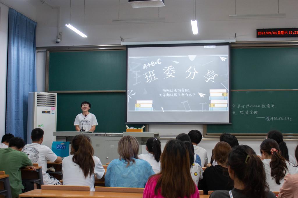 植保1805班的汪哲分享了暑期实习经历和感想:“这段时间在实习单位的工作,让我学习到了很多课外知识。”暑假的实习经历也让他坚定了保研选择,他相信未来是靠自己争取来的。教授王满囷在植保1805班班会上作分享交流。他表示,大家要学会为自己“画饼”,要时刻提醒自己,自己想要做什么,想要成为什么样的人。他解释,“画饼”就是立志追梦的过程,大家需要通过目标看齐和比对来认清自己现在所做的是好是坏。他希望大家能够认真思考自己大学的前三年的收获与变化,回顾初心,坚定地向未来出发。