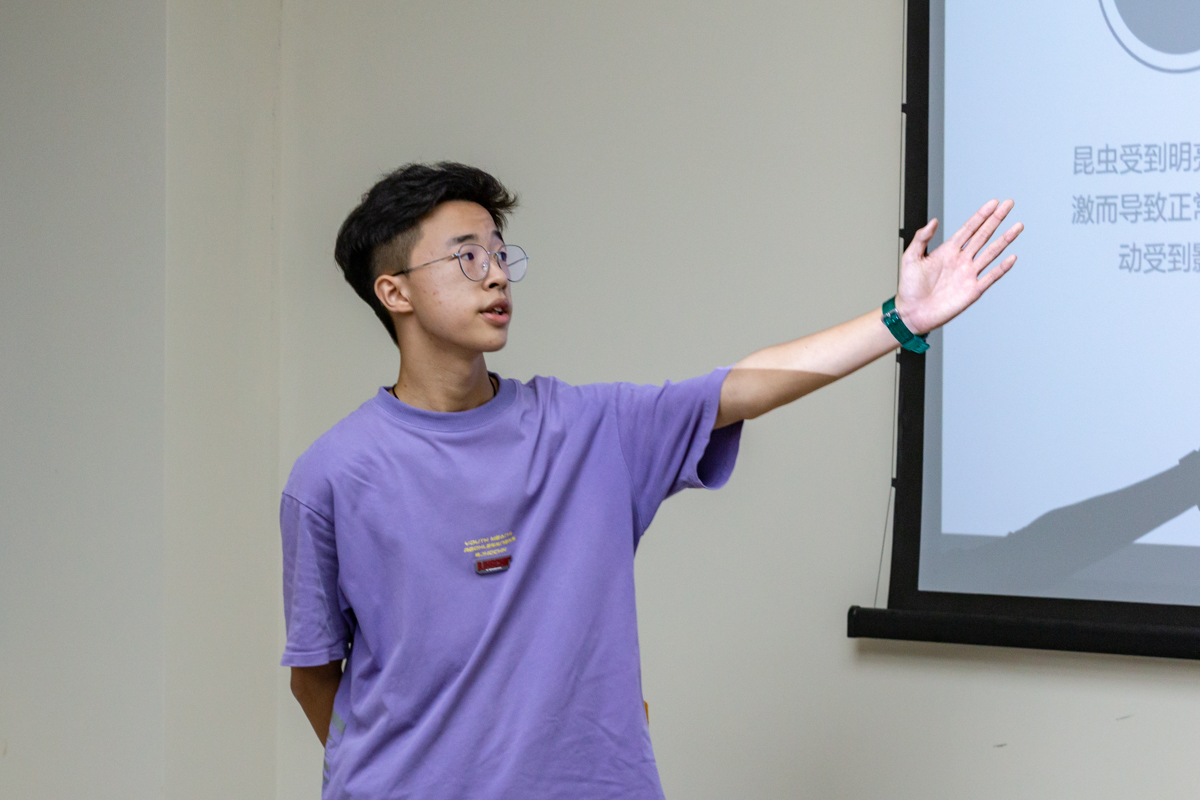“秉彼蟊贼,付畀炎火。”昆虫的趋光特性一直为人们所熟知,但究其原因却始终众说纷纭、无一定论。针对此一问题,智农2102的郭梦诗与植生2101的孙沐含通过查阅文献资料,深入了解到学术界目前占主流方向的光定向、光干扰、生物天线以及近年提出的光胁迫假说,并结合自身对周边环境的观察提出了个人对几种假说的理解思考。而来自智农2102的杨舒桓却在思维上另辟蹊径,创新性地阐述了自己的观点:昆虫趋光以何“求死”、何以“求生”。“啮齿动物中存在着自发性的自杀行为,因此我推测昆虫的趋光特性可能也是一种为种群延续而做出的‘牺牲’。”