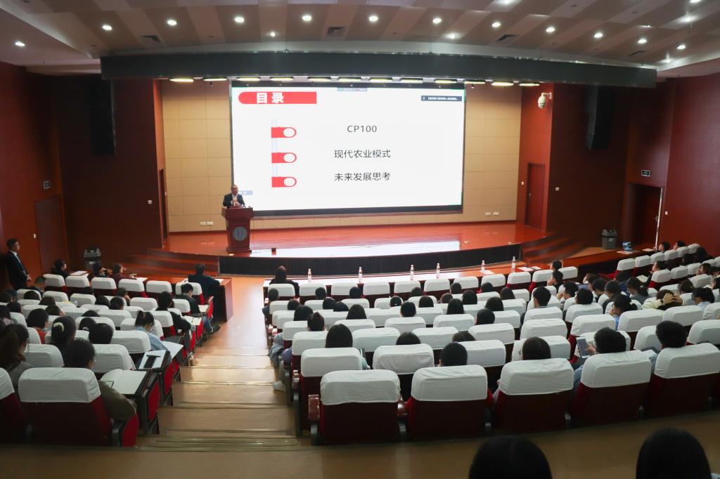 报告伊始,周永顺回顾了自己在华农学习和毕业后个人发展的历程,鼓励研究生要不断学习,勇于探索才能抓住发展机会。他介绍了正大集团从100年前种子店起步到现在成为以农牧食品、商业零售、电视电信三大事业为核心涉足10多个行业领域的跨国集团公司的发展历史,特别是改革开放40多年来,植根中国,同中国的改革开放和农业现代化发展共同成长,形成了利国、利民和利企业的价值观。