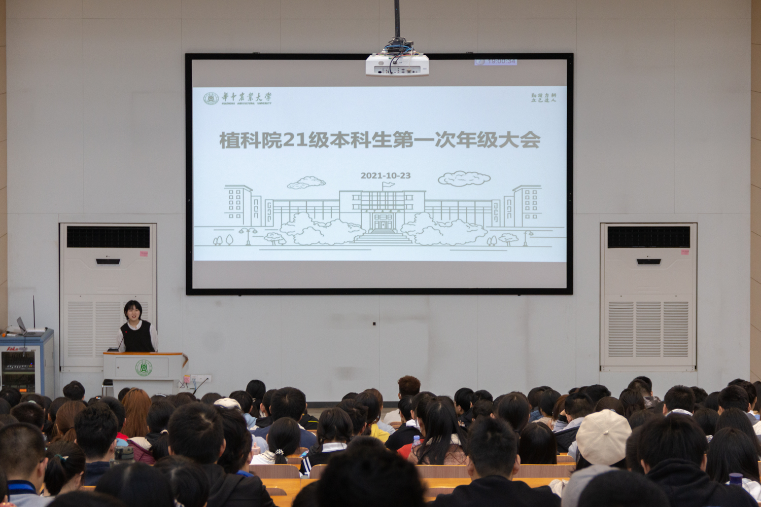 10月23日晚,植科院2021级本科生第一次年级大会在三教S1报告厅举行,植科院汪波副教授以及全体21级新生参会,会议由21级辅导员李纵擎主持。