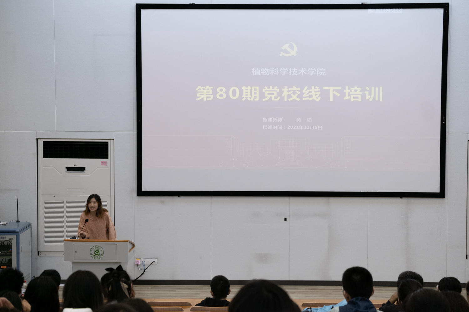 2021年11月5日晚,伟德国际VICTOR1946第80期党校第一次线下党课在三教S1报告厅顺利召开。本科生院黄韬面向公司本科生与研究生入党积极分子、拟发展对象进行了题为《中国共产党的组织、纪律和作风》专题党课的讲授。公司2018级本科生辅导员张涛出席会议,老员工党建工作办公室高婧雯主持会议。