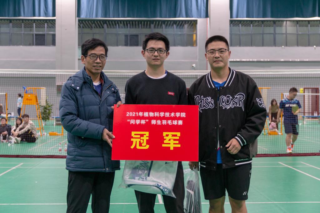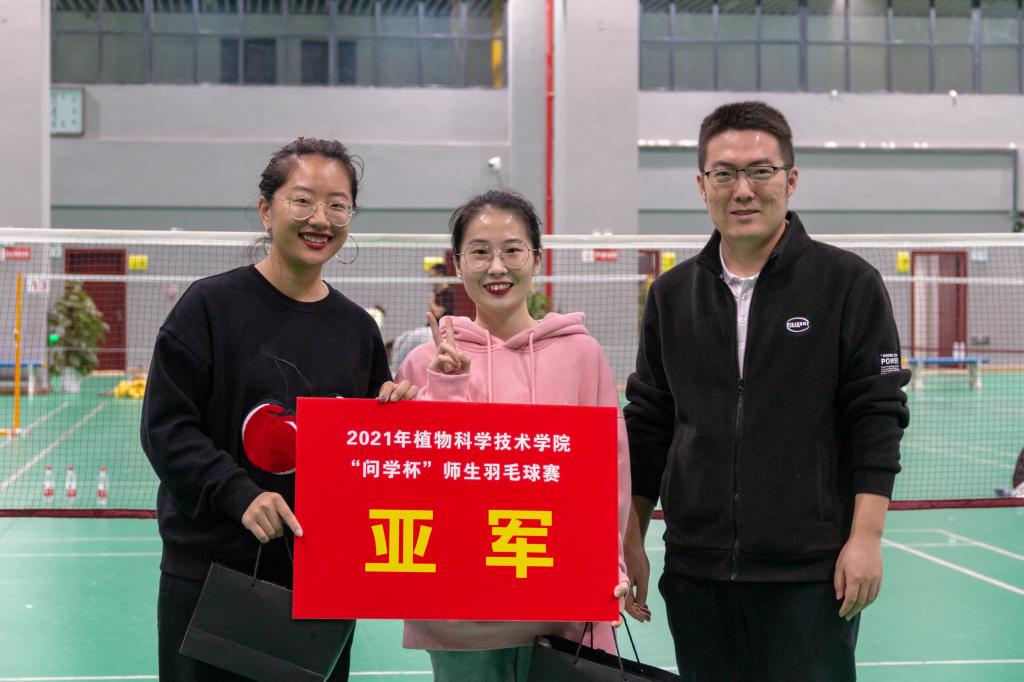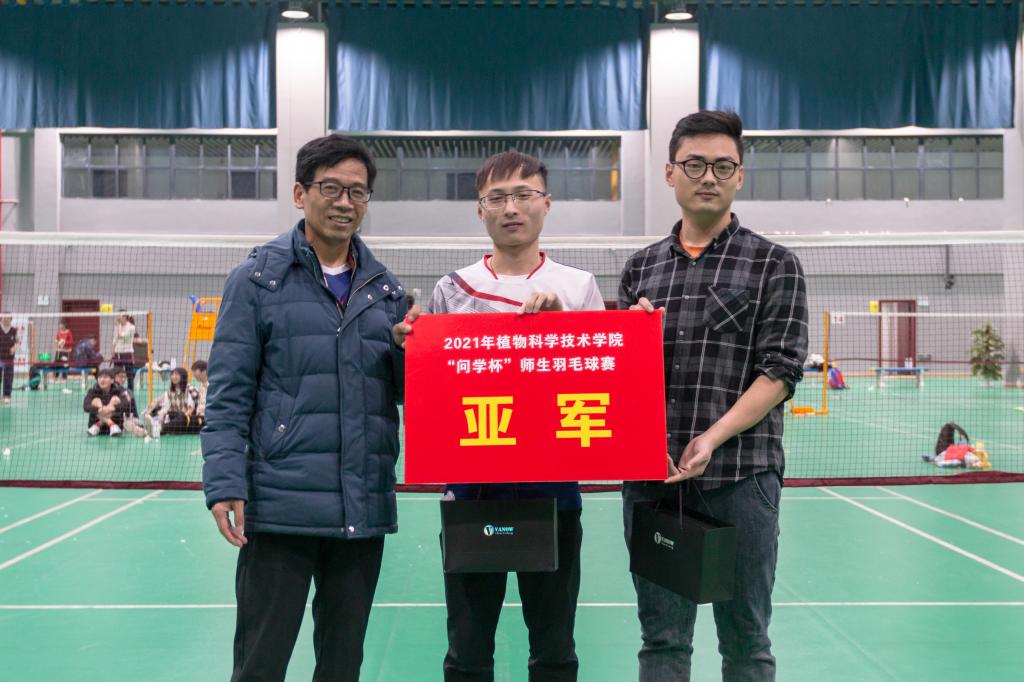 智农2101班吴乐驰邀请到了副教授徐胜臻作为自己的搭档,两人在赛场上配合默契,一路角逐。“好球!”赛场上不时传来徐胜臻的鼓励声。羽毛球被击飞过网,位于前方的吴乐驰熟练弯腰,后方的徐胜臻乘势起跳,一记完美的扣球,使他们拿下关键一分。二人最终顺利晋级四强,斩获季军。吴乐驰激动地表示:“无论是在球技方面还是生活方面,徐老师给我了许多诚挚、中肯的建议,让我收获良多。非常开心能参与这样的体育赛事,让我与老师有了更多交流的机会。”