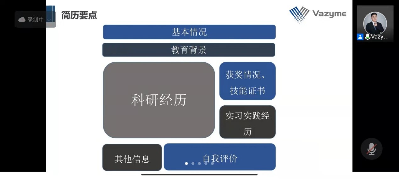 3月23日、31日,公司“职”引计划系列活动第五、六讲——简历辅导与面试培训于线上顺利举行。诺唯赞招聘经理褚海祥、培训中心朱应强分别以“简历那些事”“和你去面试”为题进行分享,公司共计150余名本研毕业生参与此次活动。