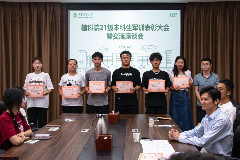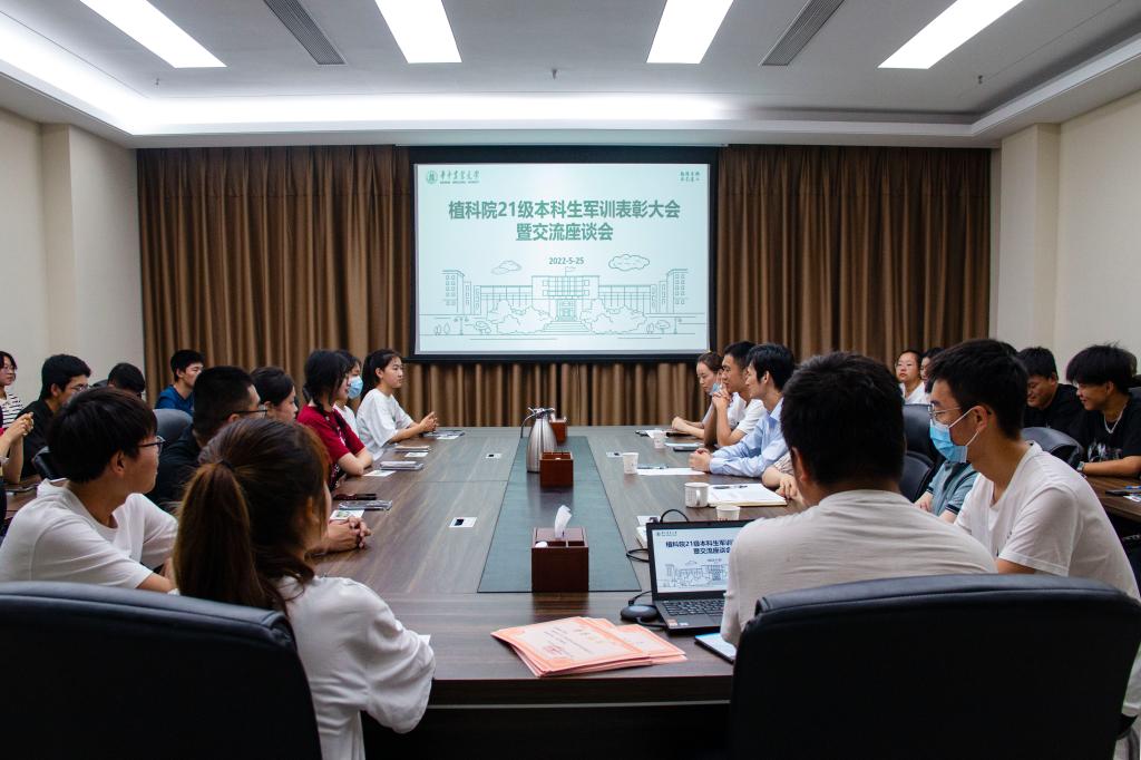 征军训一程,乘一苇以航。5月25日上午,植科院在第三综合楼B308举行了2021级本科生军训优秀学员交流座谈会。43名“军训优秀学员”与2021级班主任代表周兴苗、苏汉东老师,回味军训生活,畅想大学与未来。