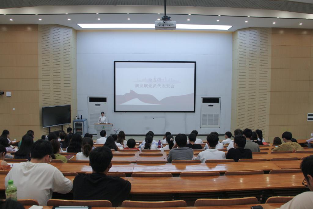 新发展党员代表庄可欣讲述了她的入党心路历程。“共产党员的真正意义是当灾难降临时,我们会为群众抵挡一切,努力让他们看见金色的希望。” 经过一年党校课程学习的庄可欣感悟颇深,她表示,未来会与广大党员同志们一同努力奋进,在学习生活中积极向优秀党员学习,发挥党员先锋模范的作用,“将勤读力耕带给我们的光能转化为立己达人的化学能“,竭尽全力为中华民族的伟大复兴贡献自己的力量。